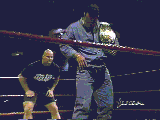 The Rock about to get stunned by Stone Cold when he sees that his pager goes off with 3:16.